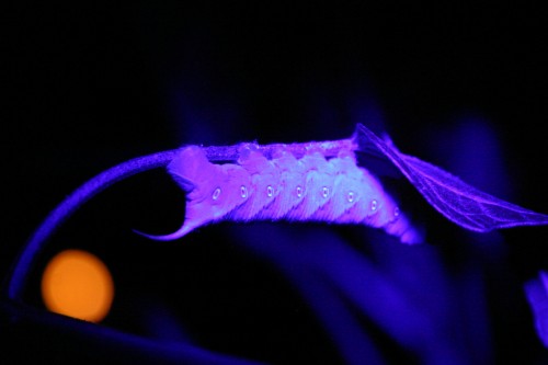 A: Hornworms have a voracious appetite. When they grow large, usually by July, one can devour a foot long tomato leaf in one day. Small ones are almost impossible to spot. Their green coloration is excellent camouflage against human and animal predators.