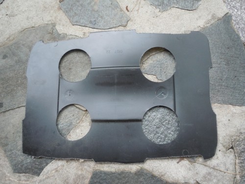use heavy scissors to cut the lid to fit inside and cut four 3″ diameter holes 1 1/2″