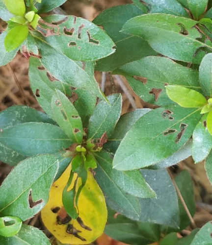 Cranberry rootworm damage to rhododendron