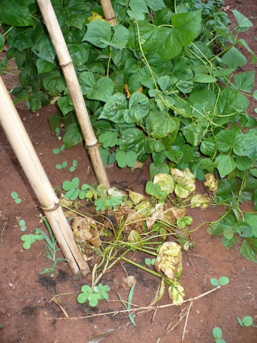 One gardener sent me pictures of her damaged beans which were covered with kudzu bugs. I initially diagnosed this as kudzu bug damage, but Dr. Wayne Gardner, who leads the effort in Georgia to understand this pest says