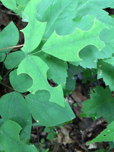 A: I teach Master Gardeners that pest diagnosis is all about patterns. You’re right that the pattern doesn’t look like leafcutter bees: their leaf damage is semi-circular and regular. Black vine weevils notch the edges of leaves but their notches are typically smaller than what I see here.