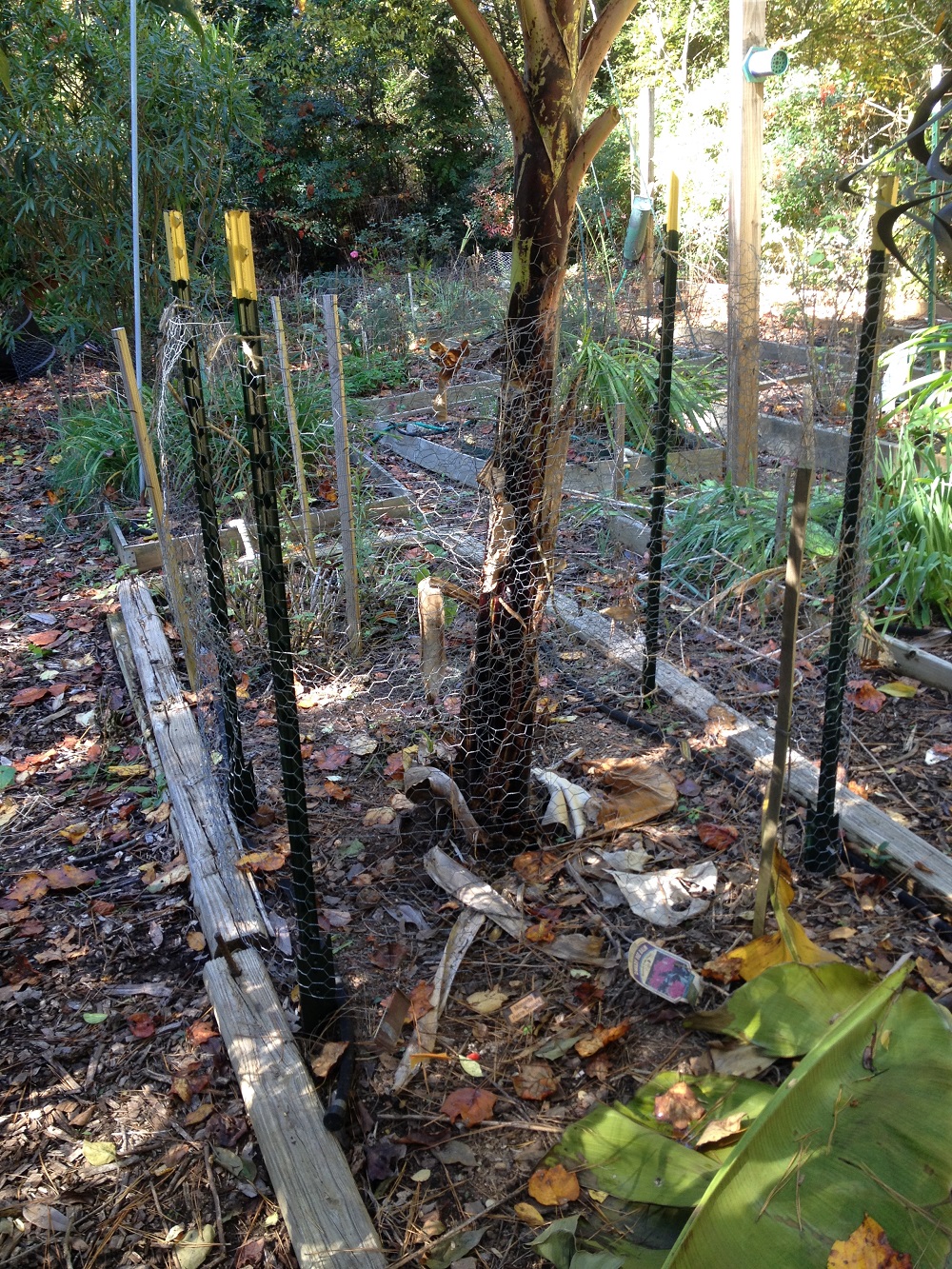 A: You sure enough have a flowering banana! Now all you need is a month of hot temperatures to get it to produce banana fruit. Since it is now November, I don’t hold much hope. Mine is doing the same thing so I made a wire cage around the stalk and filled it with leaves. I then covered the leaves with plastic, to shed rain and keep them dry in winter.