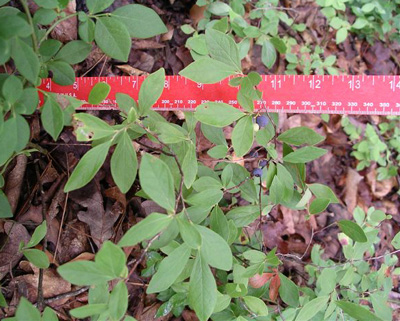 A: Native plant expert Jim Rogers, www.nearlynativenursery.com, says you have Vaccinium pallidum, which would have had remarkable pink striped white flowers in spring.