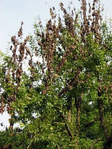 Q: Can you tell me what is wrong with my two Bradford pear trees? They have black leaves and dead ends on many of the branches.
