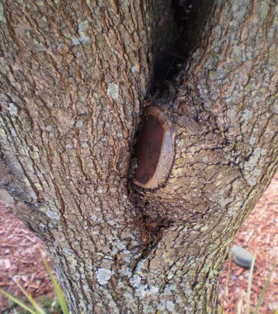 Q: I may have killed the Bradford pear tree in my front yard. Last year I cut some low hanging limbs off to allow more sunlight to get underneath the tree. Well the tree started to grow back where I had cut the limb and it’s pushing itself apart. It’s basically tearing apart its own trunk.