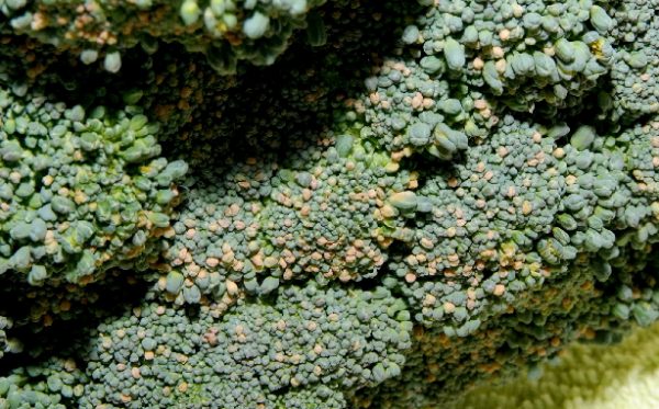 Q: This broccoli was grown by a seasoned gardener with over 50 years of experience. This is the first time we’ve seen this with broccoli in the garden. The flowers parts are oddly yellow. They kind of brush off. If you cut the broccoli and leave it overnight, almost the whole head turns like that. Can you solve our mystery?