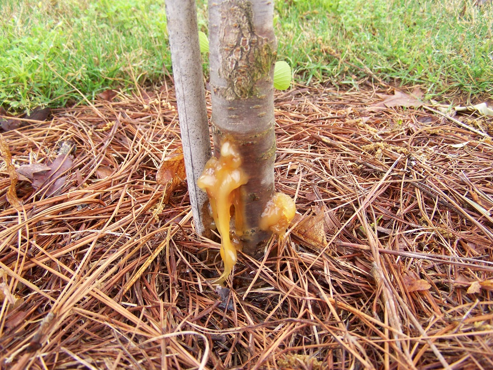 A: I think your tree was planted too deep. Cherry, peach and plum trees are famous for being intolerant of heavy soil or wet roots….they simple can’t breathe very well.