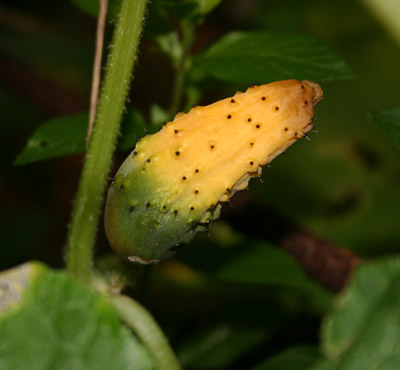 A: I think it’s a pollination problem. Bees must visit a flower several times in a day to get good cucumber pollination.