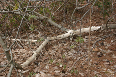 Q: Something is chewing on my big fig bush! All of the damage is within eighteen inches of the ground. There is nothing up higher. With this much damage will the fig be harmed?