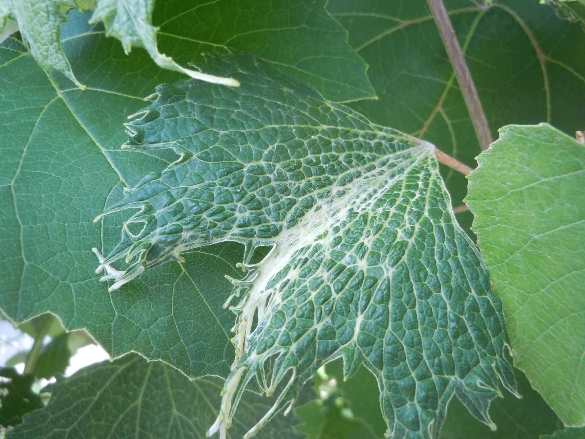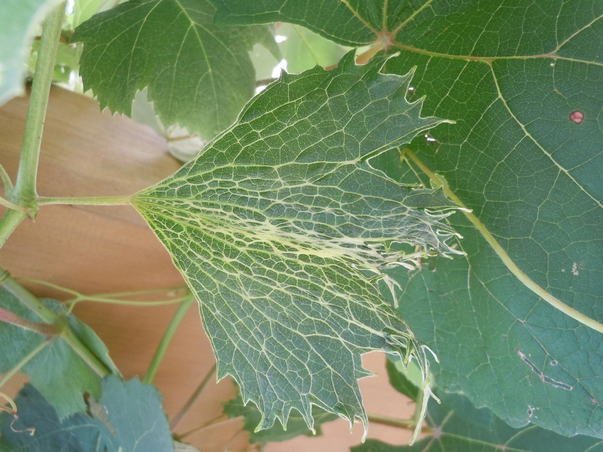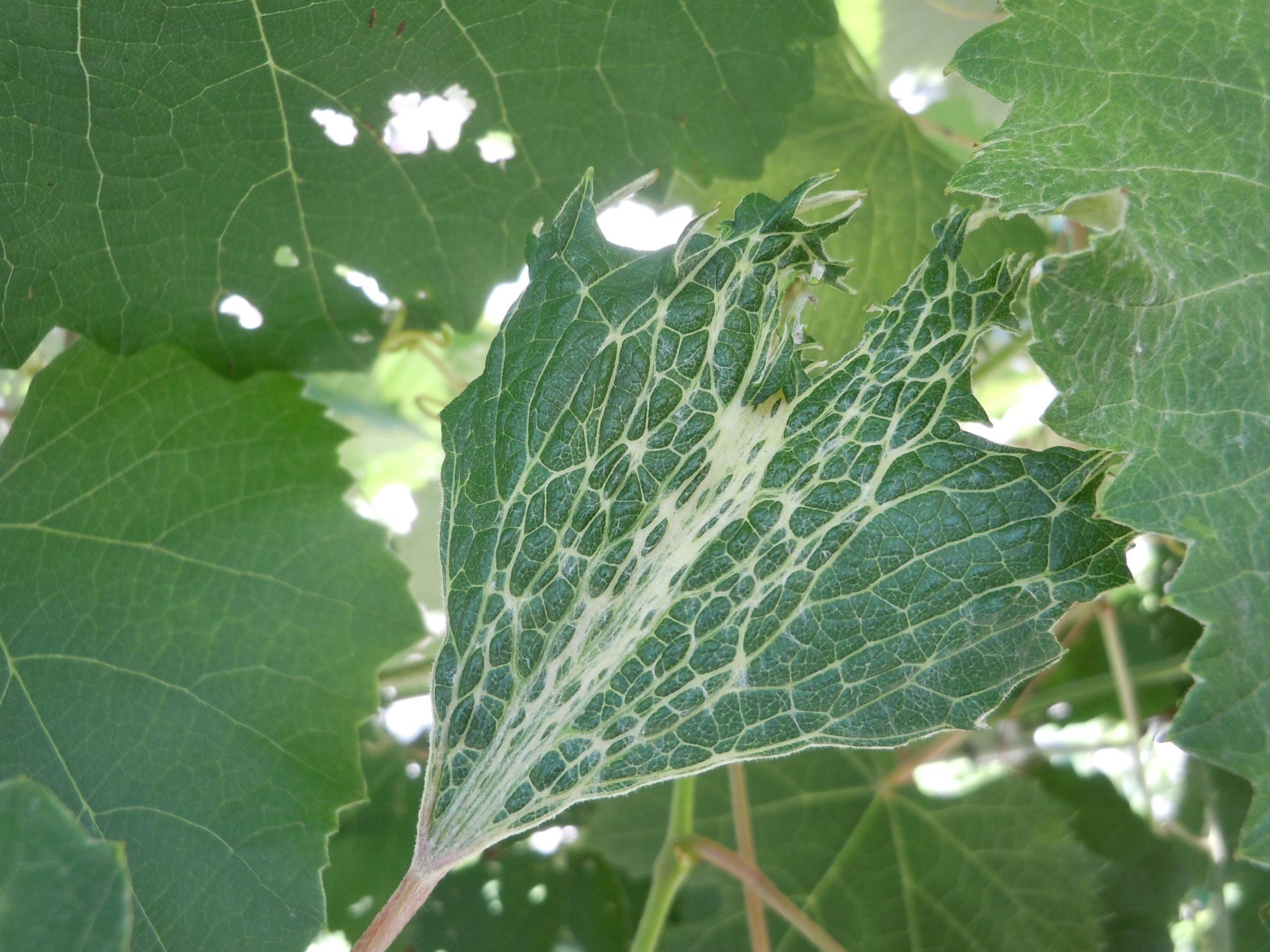 A:University of Georgia plant pathologist Elizabeth Little says “This looks like 2,4-D type damage, possibly drift from nearby lawns, pastures, hay, or corn fields. Grapes are very sensitive to this type of herbicide and 2,4-D is prone to vaporization, drift, and uptake by roots if applied to surrounding turf. The damage affects new growth. Yield can be reduced during the current year and possibly the following year depending on the degree of damage.”