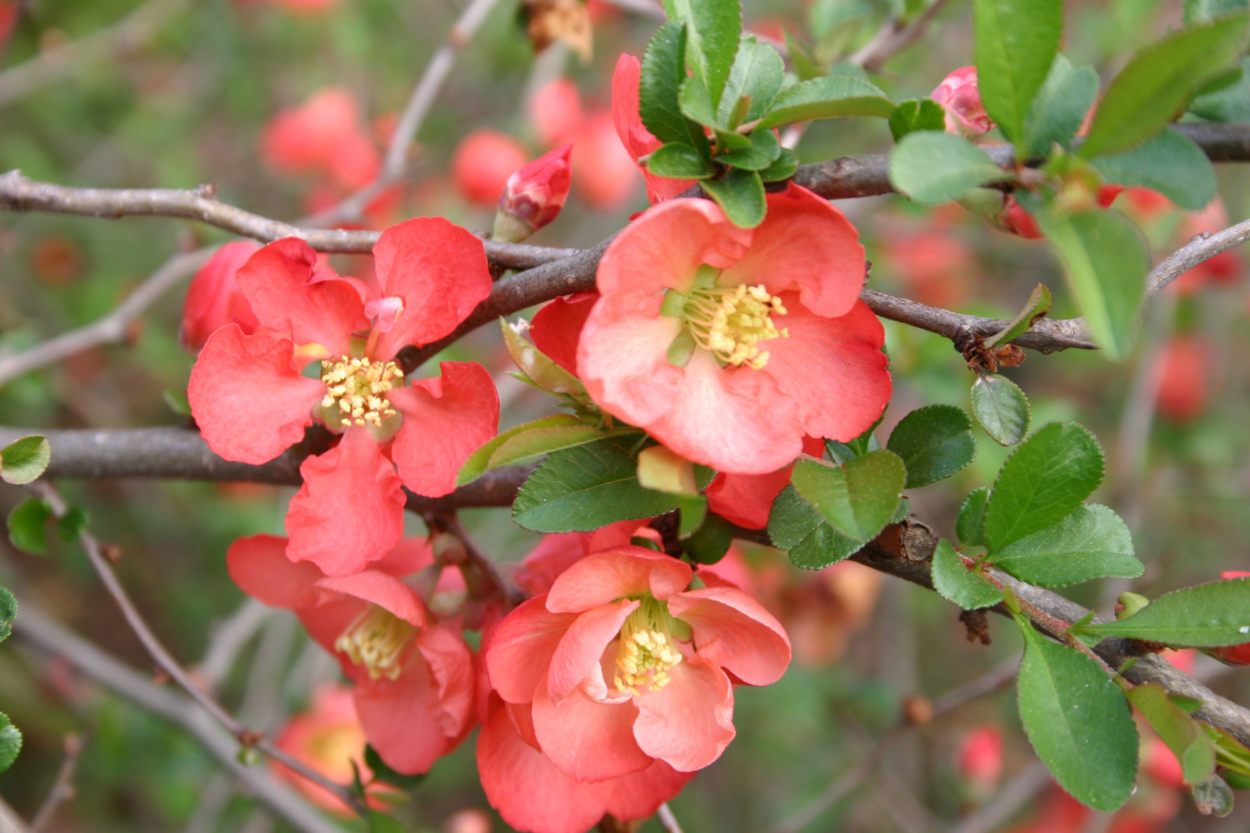 A: I commonly see two different kinds of quince. “Flowering” quince, Chaenomeles speciosa, is flowering now, with red, white or pink blooms. The blossoms come from buds originating on last year’s growth. These shrubs can be pruned after flowering is finished.