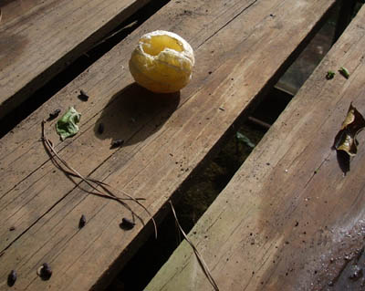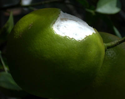 What animal would eat the peel but not the interior fruit of a Meyer lemon?? I went to my personal lemon plant and removed a piece of peel to see what it tasted like.
