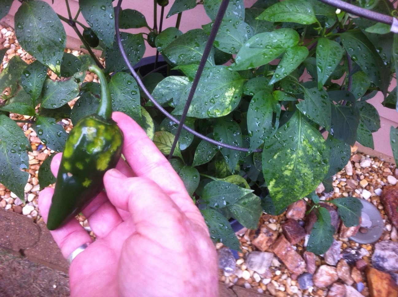 Q: My jalapeño plants have a light green pattern on the peppers. What is it?