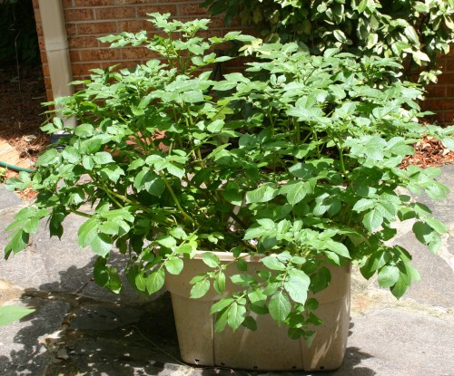 Note that the author plants her potatoes in the tub when it is almost full of perlite. I prefer to put six inches of perlite in the bottom of the tub, plant the seed potatoes, then gradually cover the stems as they elongate.