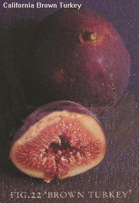 A medium to large, purplish-black fig. Unusual for a dark fig since it has amber pulp. Brebas are pyriform with prominent neck; main crop figs are oblate to pyriform with a short, thick neck. Leaf: base cordate; 5 lobes; sinuses narrow; margins crenate. Very good flavor. Well-adapted in California. Apparently not hardy enough for the Eastern U.S. No synonyms.Black JackAn unidentified, large to very large fig with reddish-purple to black skin and strawberry pulp. Oblate, flattened at apex (eye end); ribs not elevated, but darker; shaded side of fruit is a lighter shade of purple; numerous white flecks. Leaf: base calcarate; 5 lobes, latate. Good flavor. Fairly hardy. Some say it is California Brown Turkey. I have not yet reached an opinion on this question. Synonym: Black Spanish(?).