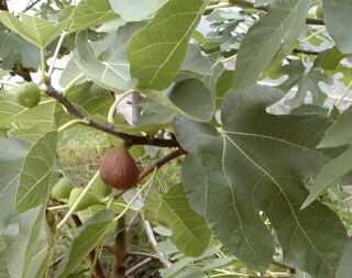 Small to medium, light-brown to violet fruit with strawberrypulp. Turbinate to oblique, mostly without neck. Small eye which has a reddish color from a very early stage (unlike Celeste). Leaf: typically small; base subcordate; 3 lobes; margins crenate. Cold hardy. It fruits on new growth if winter killed. Often bears two crops a year. Condit writes that it is very sweet, but not rich. My own experience is that is not as rich as Celeste, but is considerably better than passable. Good fresh or as preserves. Synonyms: Eastern Brown Turkey, English Brown Turkey, Everbearing, La Perpetuelle, Lee’s Perpetual, Texas Everbearing.