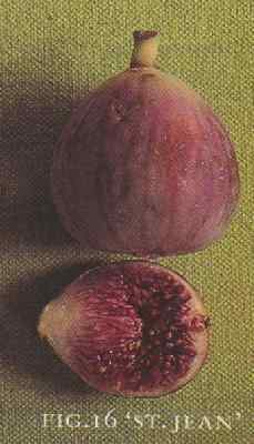 A small to medium fig giving two crops. Leaf: deeply subcordate, 3 to 5-lobed with shallow sinuses, light green. Brebas: medium, grayish-bronze with light pink pulp, oblique-turbinate to pyriform, large and open eye. Rich and sweet. Main crop: delicate violet-gray with strawberry pulp. Other characters, including flavor, are much the same as in the brebas except for one distinctive feature: there is a heavy bloom on the body with a very sharp demarcation line with the apex which is devoid of bloom. Note: I do not have this variety and would very much like to acquire it. Synonyms: Grisé Savantine Bifère, Grisé de Saint Jean, Grisé Madeleine, Grosse Grisé Bifère.