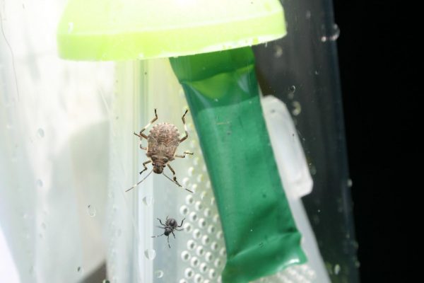Q: I had a bumper crop of tomatoes on my 5th-floor balcony this summer until stink bugs got at them. The damage they do doesn’t show on the outside but makes a hard white spot on the meat of the tomato. Do you know of a remedy?
