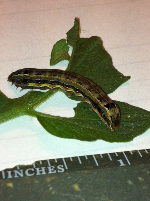 Q: I have several of these on my tomato plants and have no idea what they are. They don’t look like cutworms and they only seem to be eating the leaves. Can you help?