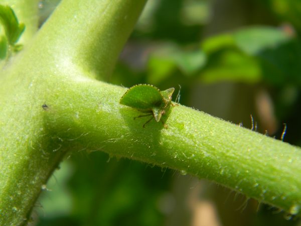 Q: Can you help me identify this insect found on my tomato plant, I think it is a buffalo leaf hopper. How to control it?