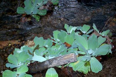 A: It’s water lettuce, a tropical plant often used in backyard water features. Like water hyacinth, which has clogged canals and streams throughout Florida, water lettuce can be a big problem in the wrong spot. However, water lettuce and water hyacinth are both unable to survive winter freezes in Atlanta.