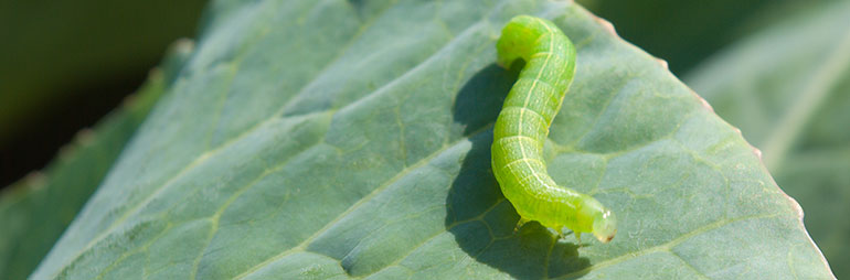Apply Bacillus thuringiensis to cabbage, broccoli and cauliflower to ward off cabbage looper caterpillar damage as these plants mature.