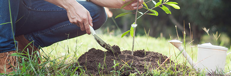 Cooler weather means it’s time to plant shrubs and trees. Make sure to dig a hole three times as wide as the root ball.