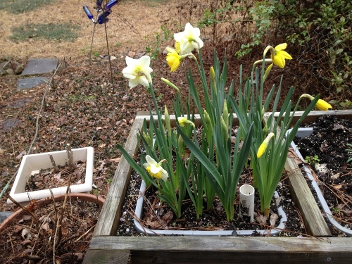daffodils planted upside down on left