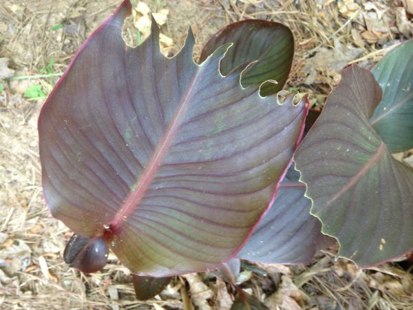 A moth, called the Brazilian skipper, lays her eggs on the canna leaves. When the pests hatch, they stitch the edges of the young leaves together, making a perfect hiding place. Keep an eye on the leaves as they unfurl and pull them apart.