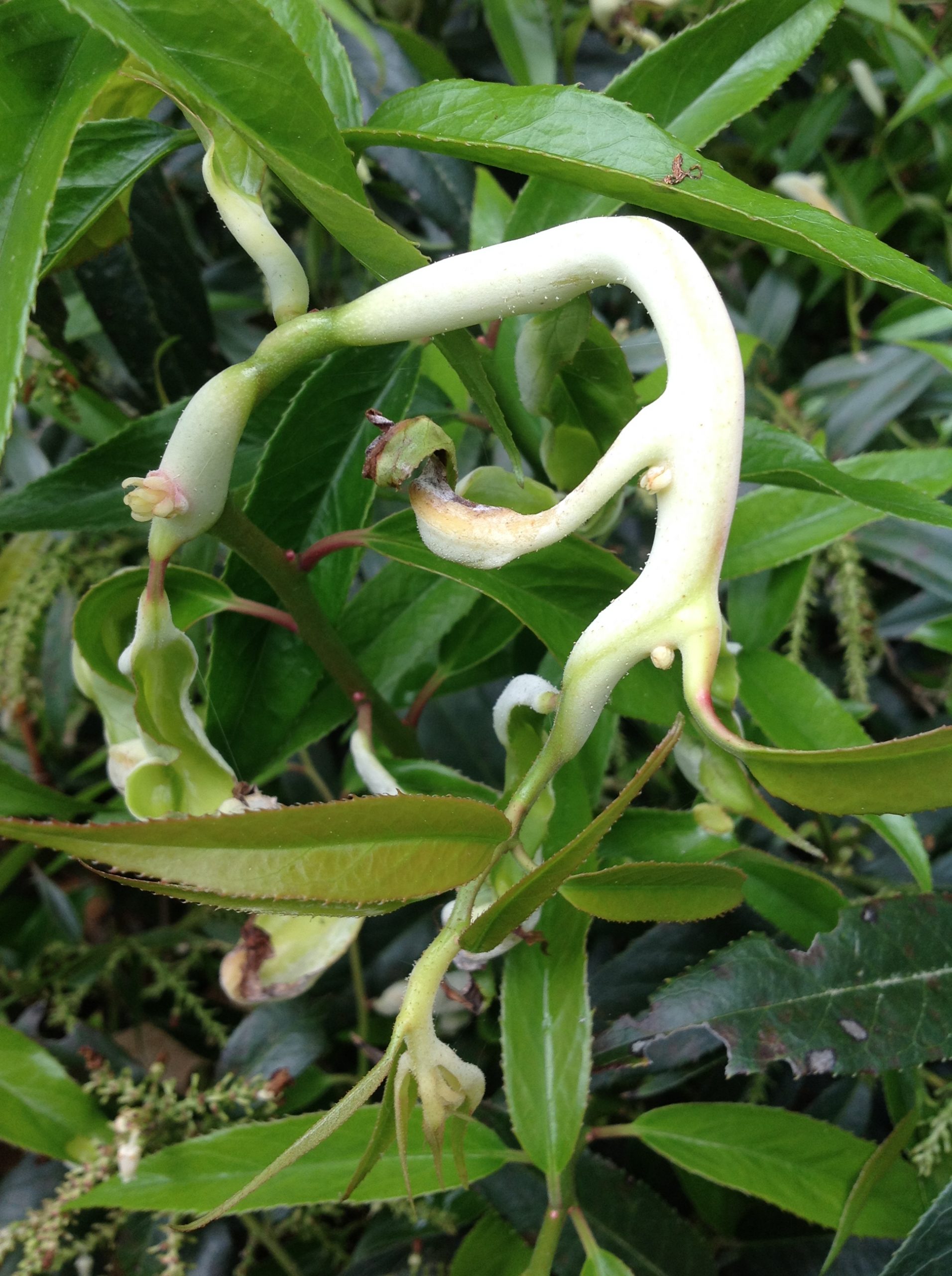 Q: I live in Rabun County and I have this weird fungus on my leucothoe. Is it exobasidium leaf gall?