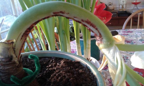 It originates from a diseased bulb but affected leaves or flower stems can shed fungal spores as well.
