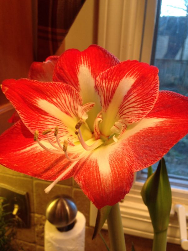 When all of the blooms have faded, cut the bloom stalk off at soil level. Sometimes a bulb will send up a second stalk in January if it is vigorous and the plant has been kept in strong light. Allow the leaves to remain on the plant and keep it in a sunny window until May. An amaryllis can be planted outdoors then for the summer. Next September, dig the bulb, cut off the foliage and keep it dry until November. Plant in a pot and see what happens. With a bit of water and warmth, you may be rewarded with spectacular blooms next Christmas.