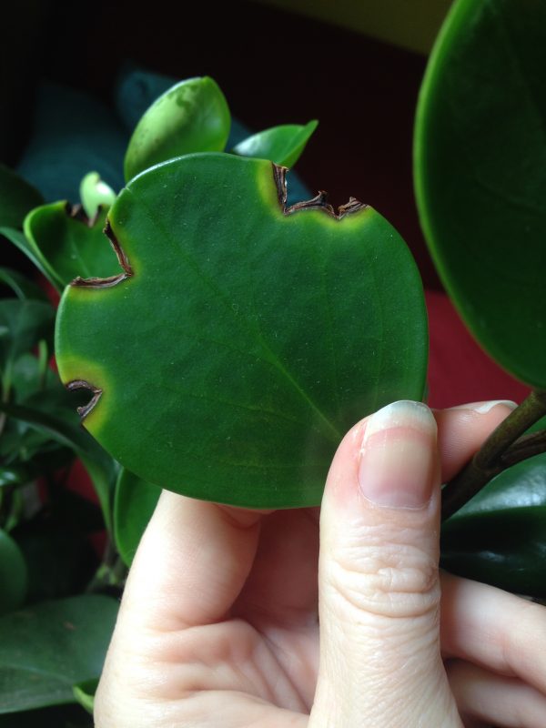 Q: I have a houseplant that looks like it’s being eaten by something but I don’t see any insects near it or on it.