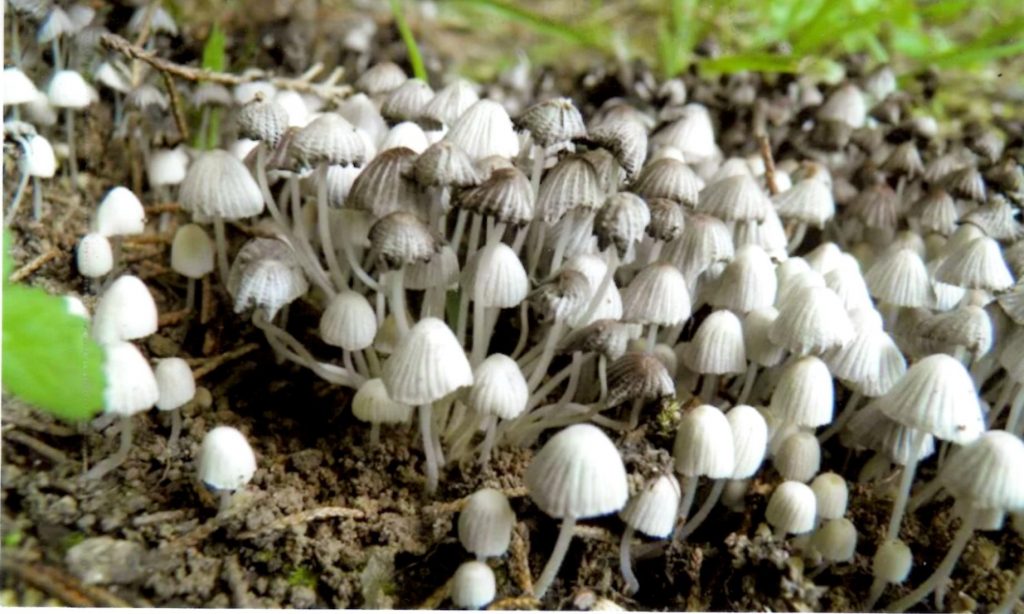 Q: I tried growing some button mushrooms on a weathered pile of wood chips. I just buried a mushroom every five feet around the pile. I got thin little fragile mushrooms that didn’t look like the ones I buried.