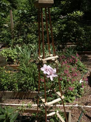 One of my delights is finding new ways to use common materials to benefit my plants. My friend Tara Dillard taught me the word “tuteur”….a garden tower used to train vines.