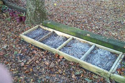 The boxes are filled 5″ deep with rooting media I made with the following ratio: