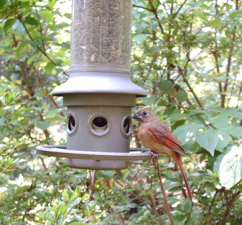 SQUIRREL PROOFING Squirrels are the bane of bird feeders. I went though a half-dozen plastic and wooden feeders before I bought an Eliminator from Wild Birds Unlimited. It has a weighted, adjustable perch which allows lightweight birds to feed but slams a door over the feeding portals when a squirrel gives it a try. Reviewers also give high marks to the RollerFeeder ™. I recently spent several enjoyable minutes in front of a store video player watching squirrels attempt to master a Yankee Flipper ™ bird feeder. A motorized perch spins around when a squirrel grasps it. Although pricey, this feeder is guaranteed to tempt you to produce a video of “Stupid Squirrel Gymnastics”.