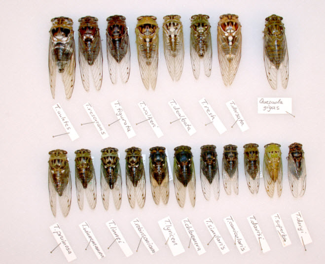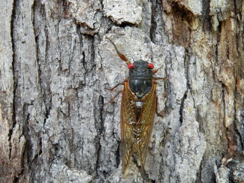 Cicadas belong to the species Magicicada. Periodical cicadas emerge in seventeen or thirteen year cycles. There are six groups of cicadas in North America. Each group is called a “brood” and each emerges in a different year.