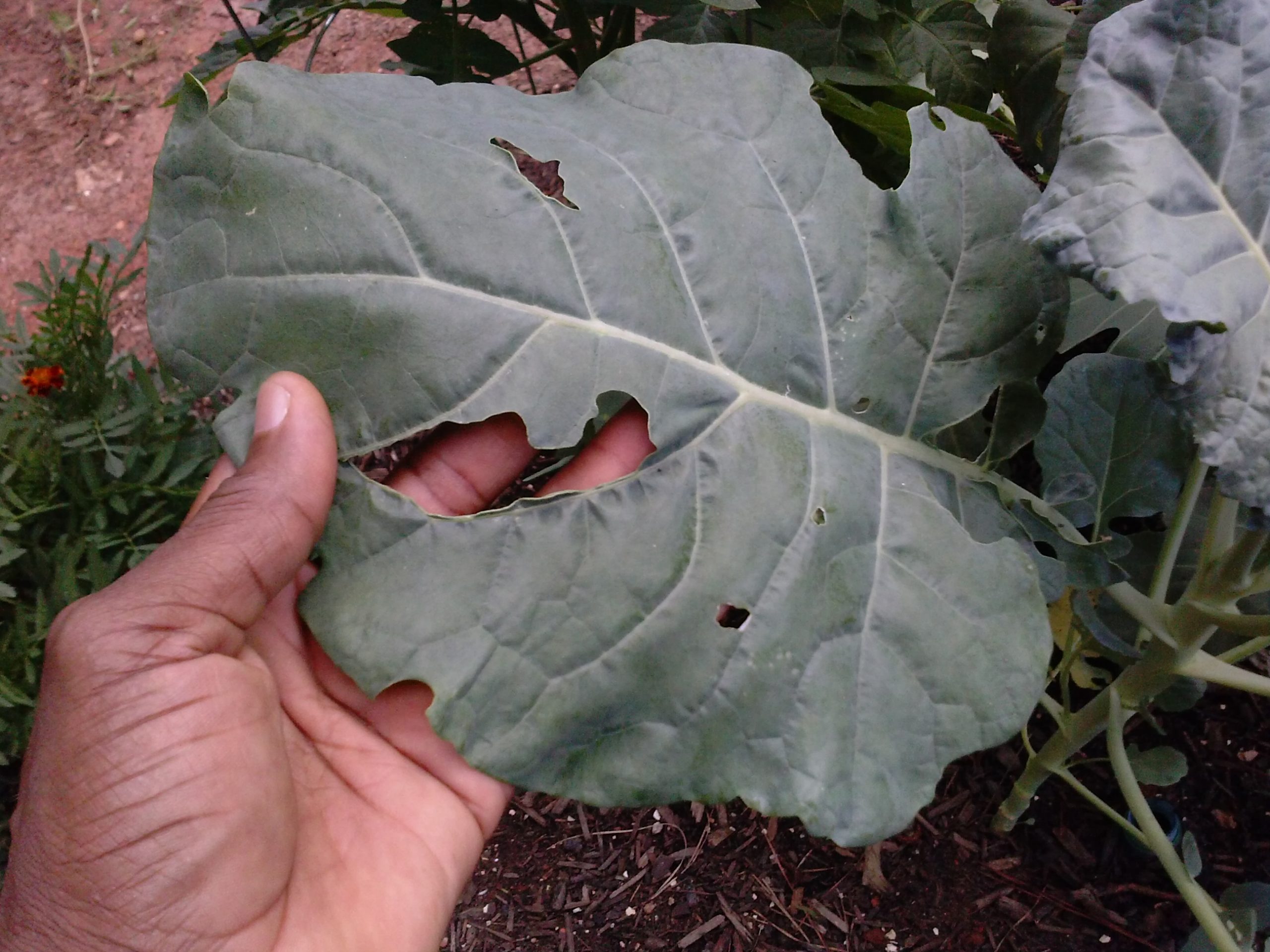 Q: Something is eating my plant leaves. My beautiful collard greens were devastated in two day’s time by a caterpillar. What can I do about it organically?