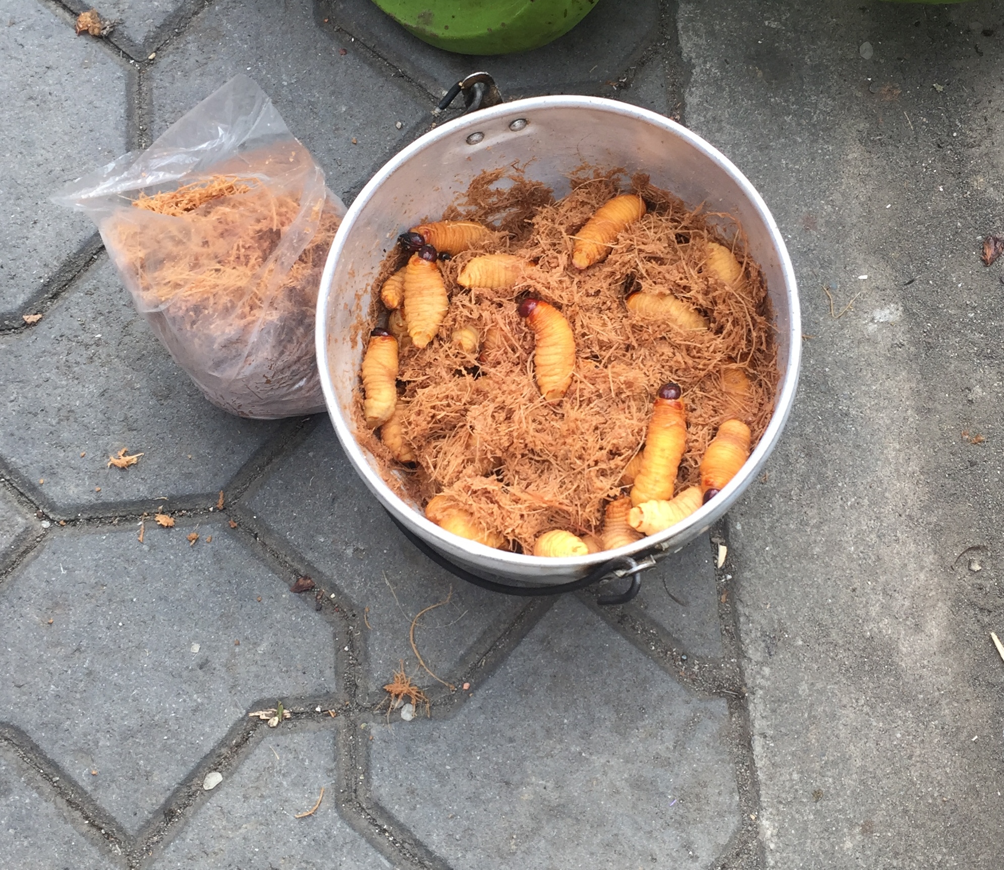 And here are photos of the big grubs that folks in Ecuador snack on. Yes, I enjoyed them too!