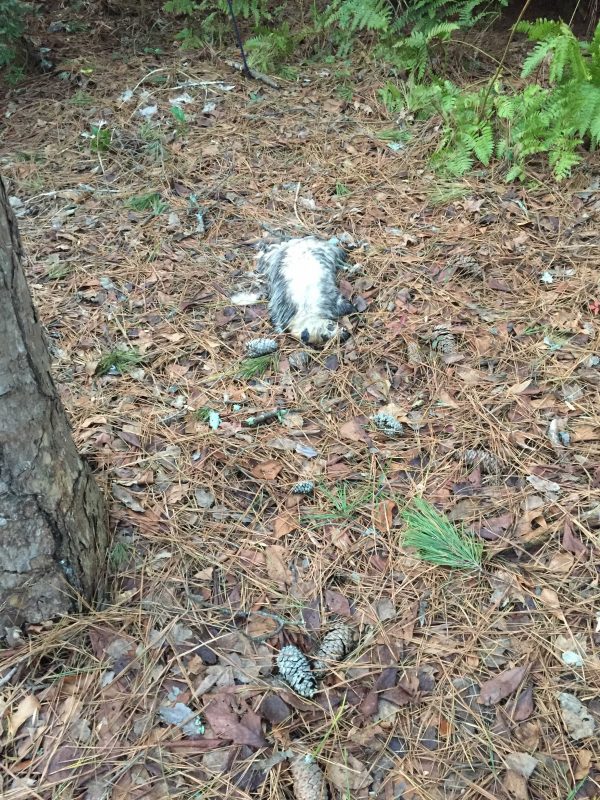My expectation is that the possum will molder in place for a few months and I’ll be able to scatter the pine nugget pile without evidence of its recent inhabitant.