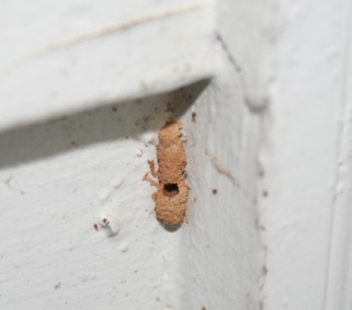 A: You are the host of dirt dauber wasps. They are considered beneficial because they stuff their mud tubes with spiders, including black widows. After provisioning the tube, they lay their eggs on the bodies of their prey. If their messy mud tubes outweigh their benefits you could control them with a surface spray of cypermethrin (Demon) or deltamethrin or permethrin every couple of weeks.
