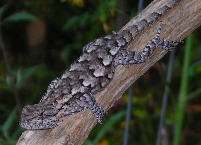 A: My friend Daryl Pulis (www.MrsGreenThumb.com) says it’s a fence lizard, Sceloporus undulata . They mainly eat spiders and insects. Our mutual friend Hal Coleman from North Fulton Exterminating said that they’re also called “fence swifts”.