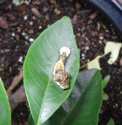 Because the caterpillars prefer to feed on members of the citrus family, one common name is “orangedog”. They camouflage themselves to resemble bird droppings.