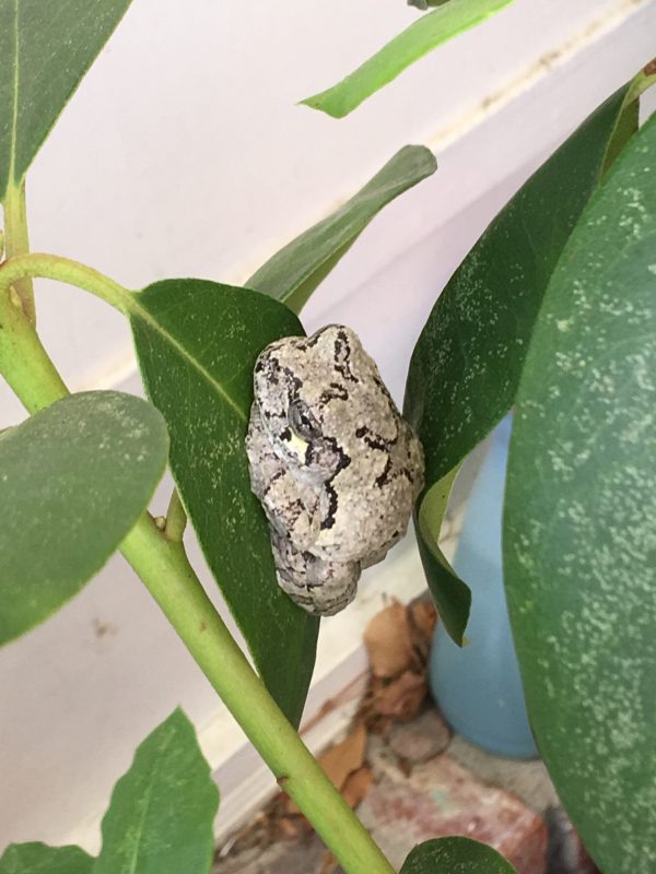 A: It’s a gray tree frog. You’ll hear their call in spring but have a hard time spotting it due to their camouflage.