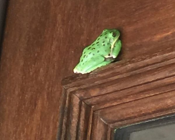 Q: I was wondering if you might know what kind of frog this is. He’s very cute but shockingly bright. We live in Ringgold, in the woods.