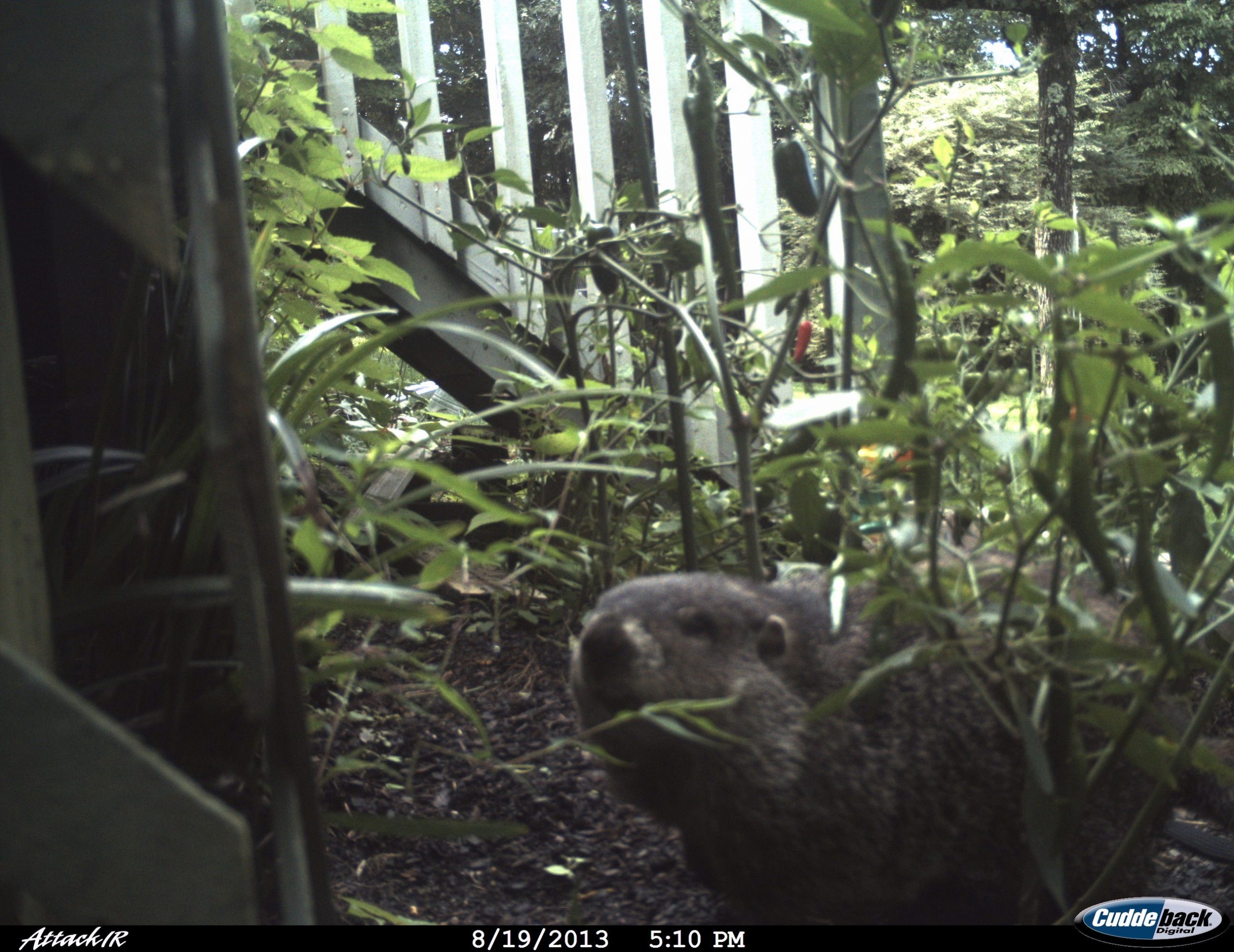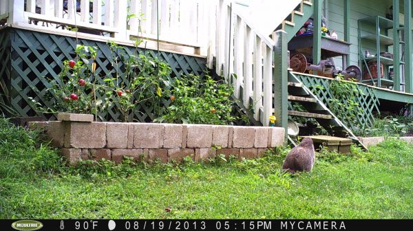 A single electric fence wire located four to five inches above the ground outside the fence will discourage climbing and burrowing but you’ll have to be vigilant about keeping grass and weeds from touching it. Use hardware wire to exclude woodchucks from digging under porches and decks.