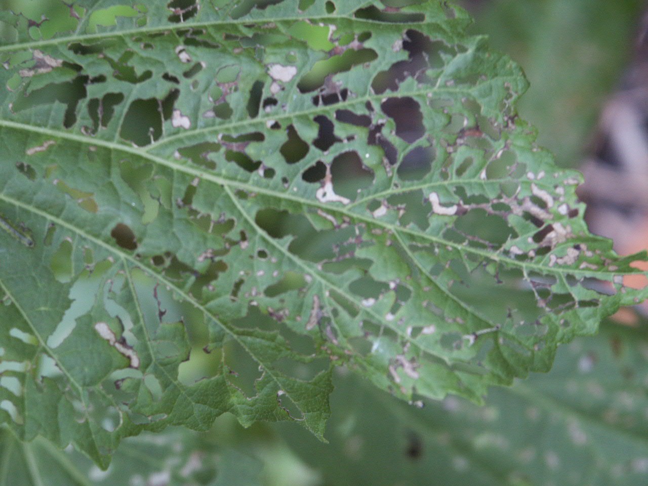 Q: The leaves of my hibiscus are eaten through like eyelet lace. What could chew them up so?
