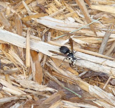 Q: An unidentified wasp camps out in my garden next to the entrance to a yellow jacket nest. I call him “Super Wasp”.