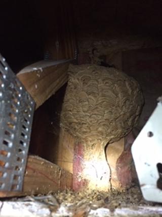 Q: I was changing a vent fan in a bathroom when I found this is the ceiling. Do you have any idea what type insect this is?
